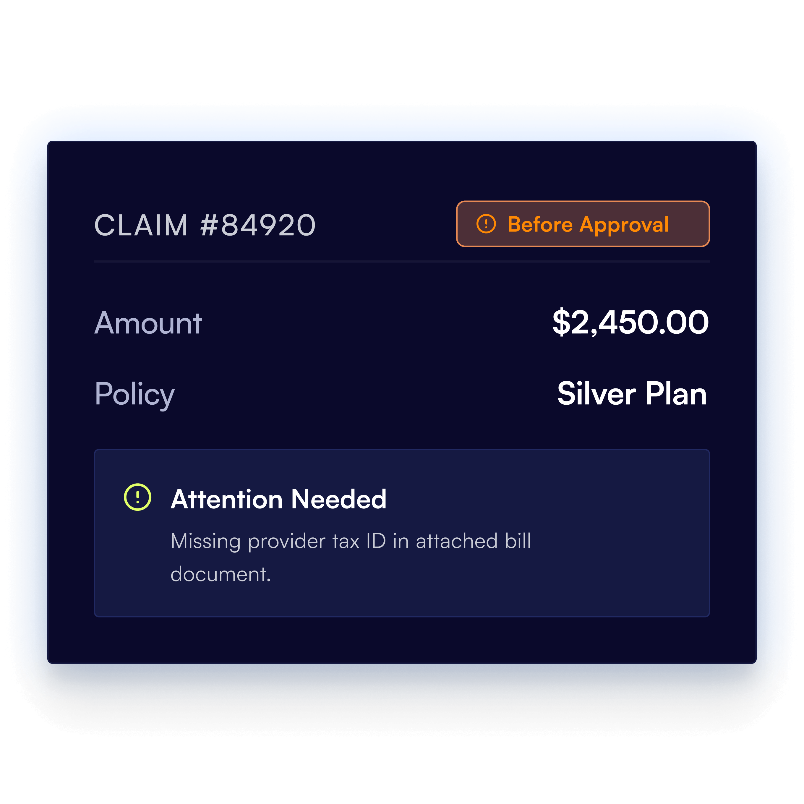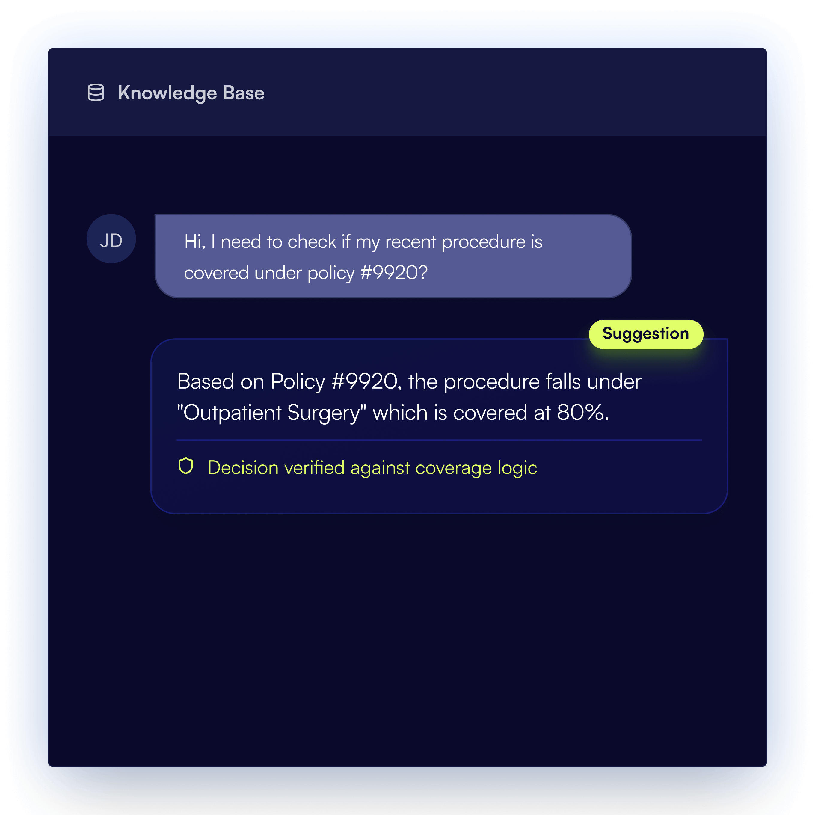 Every coverage condition is validated by a single, specifically configured AI agent, to ensure the decision accuracy.